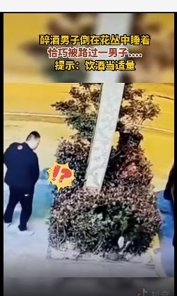 醉酒男子倒在花丛中睡着,恰巧被路过一男子……