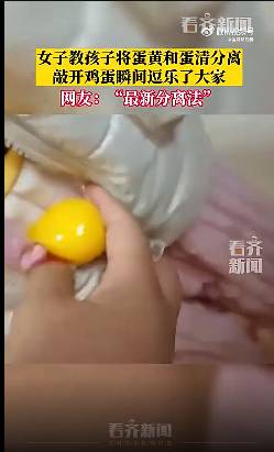 女子教孩子将蛋黄和蛋清分离,敲开鸡蛋瞬间网友乐了。