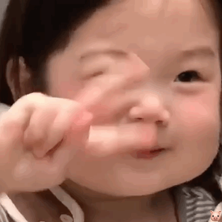 每次有人要给你吃东西你就做这个动作。