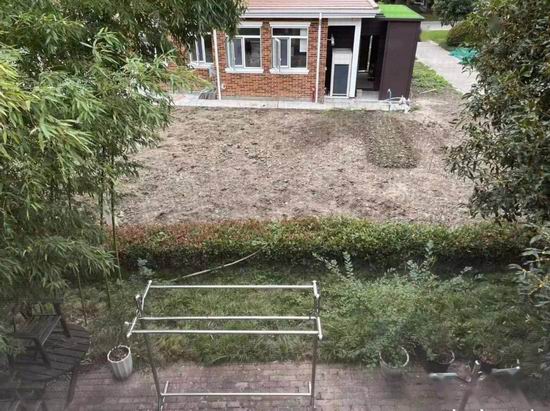 ▲孙默家后院的草坪,很久没有打理。这一排用来区分和邻居家的冬青,是最近邻居帮忙整理的。?.受访者供图