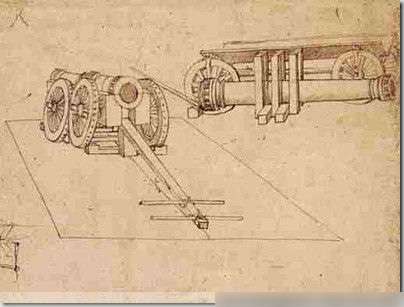 由此,布鲁内莱斯基的机械系统设计理念对达·芬奇产生了很大影响。当时一批锡耶纳工程师对达·芬奇的科学世界也产生了重要影响。的工程师们设计了一种外形像船的河道淤泥挖掘机,用来清除浅水口的沙砾和淤泥,还有一种能够提高装载量又加快行驶速度的桨叶船。这些锡耶纳工程师的发明,让达·芬奇对机械的魔力产生了巨大的兴趣。