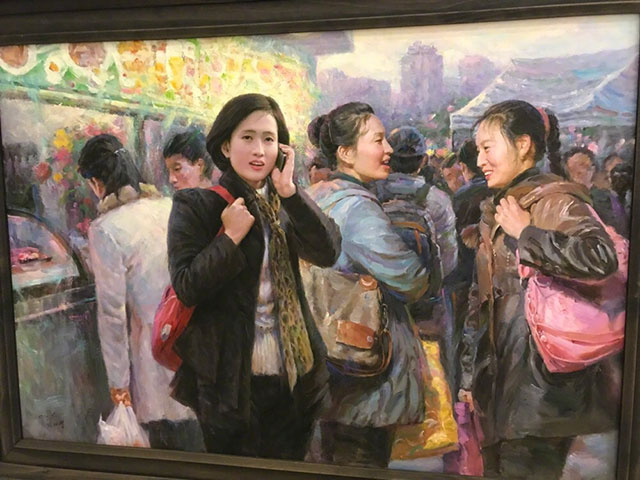 @马伯庸: 看完伊藤润二,旁边正好有个朝鲜当代油画精品展,就一并逛了,感觉还挺有意思。允许拍照,而且工作人员还一直跟在屁股后面说买不买?买不买?朝鲜油画的价格很便宜喔