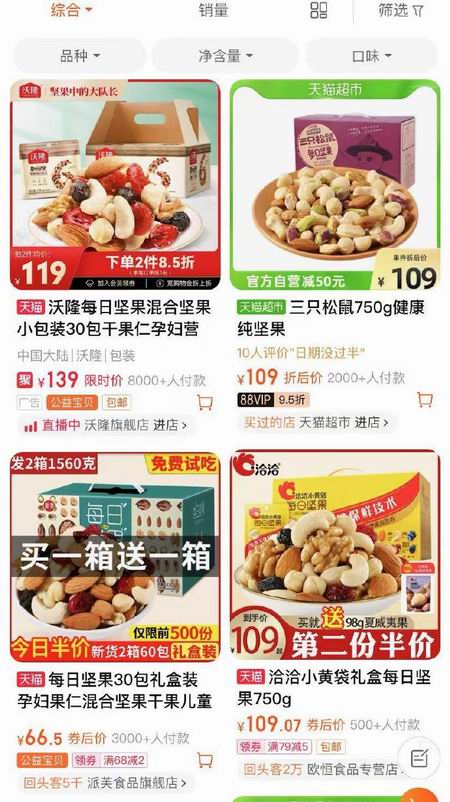 以三只松鼠的 “每日坚果” 为例,产品面世时价格在 200-300 元一箱,而如今价格已降至 100 元左右。而百草味的同类产品为 70 元左右,派芙为 60 元左右,随着这一品类的产品增多,价格或许还将进一步下降。