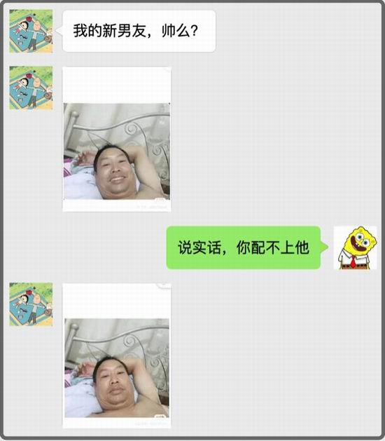 搞笑女院办表妹向我宣布她的春天已经悄然降临,并向我弹射了两张."新男友".的照片。她说:."余生不长,要爱上一个能让你笑的男人。"