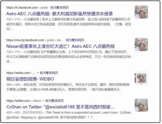 "nissan.前董事长上演世纪大逃亡",旁边配图还是大叔喜笑颜开地说着."哥的胸肌给你靠"。