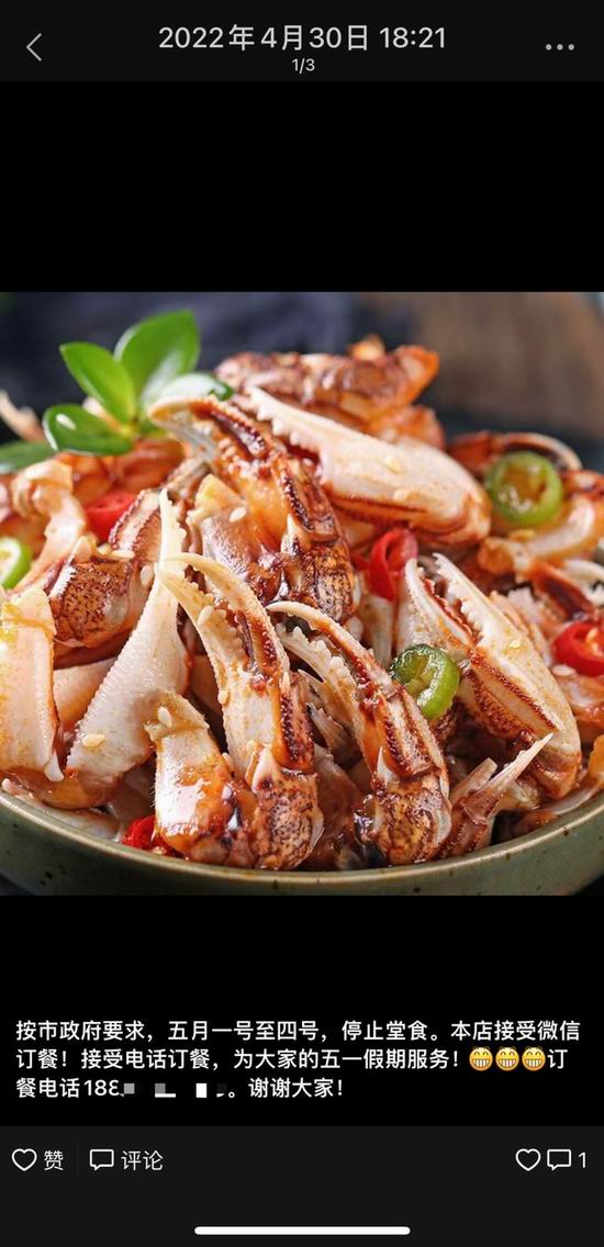 我这个人人缘比较好,周围的客人很多留了微信了,然后一说不让堂食了,我就发了朋友圈,说「不让堂食了,您微信给我下订单,方圆两公里之内我可以骑电动车给您送」。
