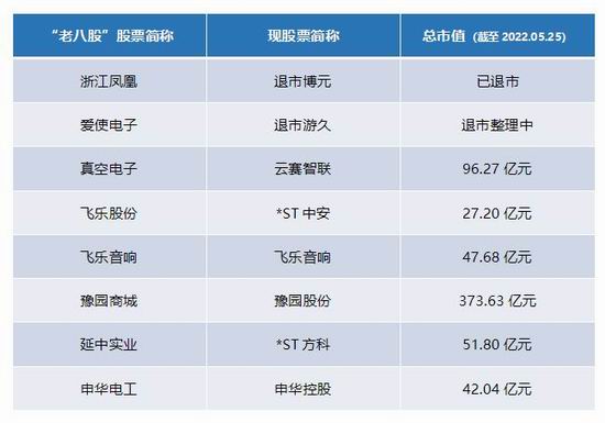 老八股中,目前有两只已经退市 —— 浙江凤凰(退市博元)、爱使电子(退市游久),两只在退市边缘挣扎 —— 飞乐股份(*ST 中安)、延中实业(*ST 方科),其余的几只,市值和业绩也大多表现平平,只有豫园商城(豫园股份)稍强一点。