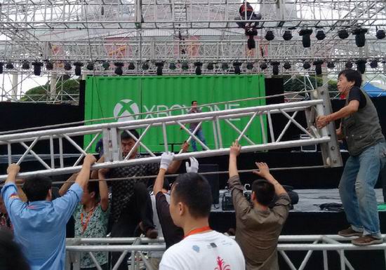 因发售延期,原定于 9 月 22 日夜间在东方明珠电视塔广场举行的国行 Xbox One 上市庆典,临时更改为粉丝欢庆活动。屋漏偏逢连夜雨,9 月 21 日傍晚,上海中心气象台发布台风预警,强热带风暴 “凤凰” 将于次日影响上海,届时可能出现六至八级大风。此时,应邀的媒体和玩家正陆续从全国各地赶往上海。9 月 22 日上午,微软美国总部、中国团队与爱德曼公关公司的人员紧急开会,中午时分,决定取消活动,已搭建好的部分舞台和灯光器材被冒雨拆除。