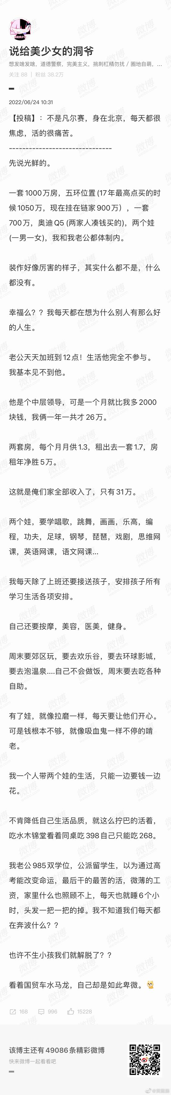 原帖由 Guest from 86.20.147.x 于 2022-6-27 14:46 发表 看完了,其实我想说,每个阶级有每个阶级的活法和满足感,我们老协这份工资,养不起家吗?各位老协不幸福吗?真的给你们月入2万的时候,你们也有月入2万的消费,一样也是觉得很紧,不够花,收入高了,阶级也就高了, ...