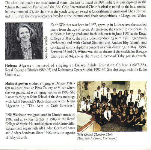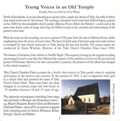 北欧盛产不食人间烟火的合唱团,这和那里有多如牛毛,但水准普遍较高的教堂唱诗班不无关系。和以前被发掘出的发烧天碟《黑教堂》、《大地颂赞》一
