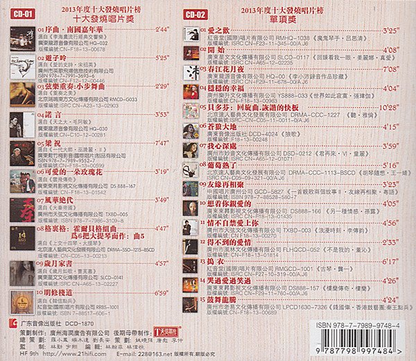 第九届·2013年度十大发烧唱片榜主办单位,特别精选了2013年度获奖作品中的部分曲目录音,经由音乐、音响、录音专业人士编辑、制作出《第九届.2013年