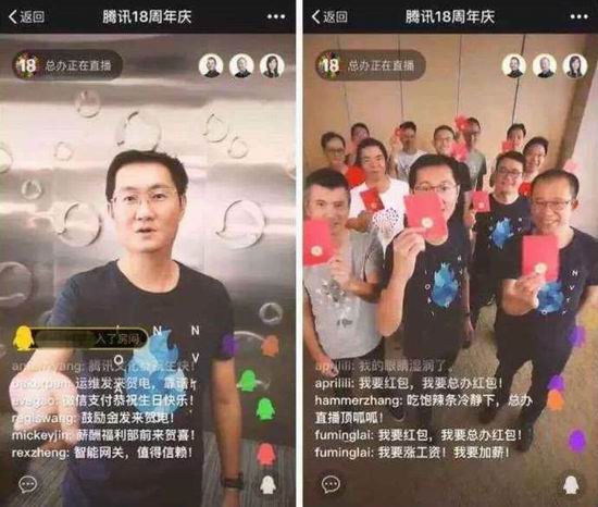 2016 年 11 月 11 日,腾讯成立 18 周年的纪念日,马化腾宣布给每位员工发放 300 股腾讯股票作为公司成立 18 周年的特别纪念。另外,腾讯还为在职员工、离职员工、外包人员和公司服务人员准备了总额约 3000 万元的现金红包,单个红包金额在 188-1888 元之间。