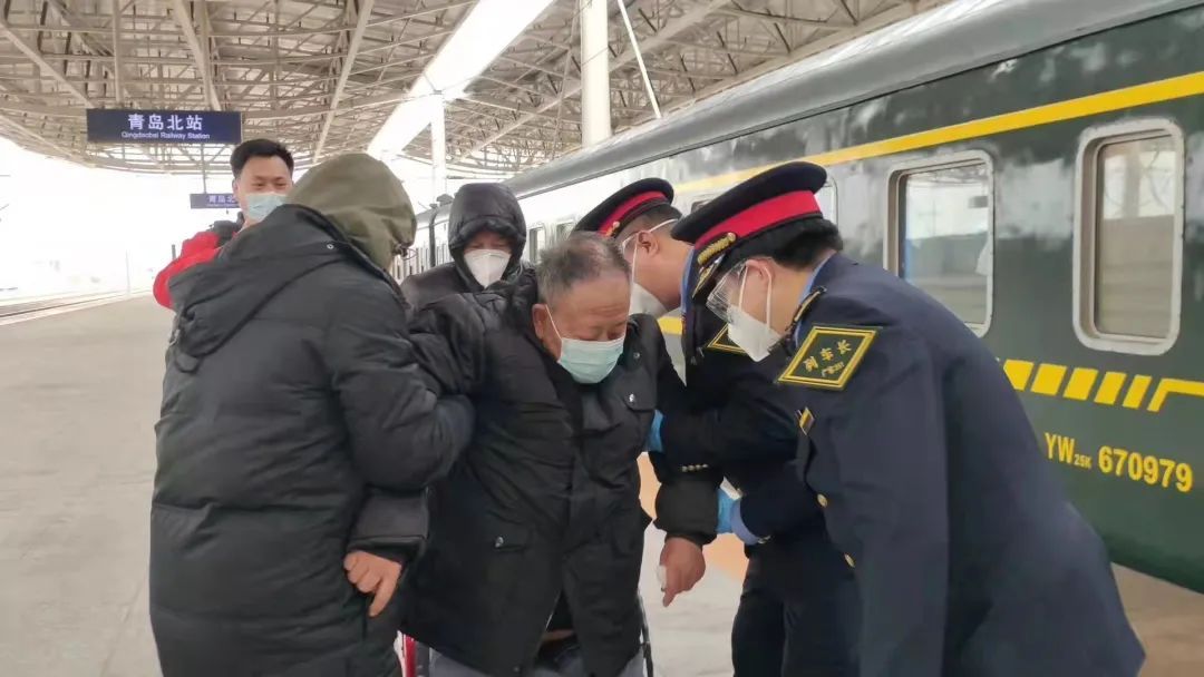 据悉,1月21日,姜元陈在志愿者的帮助下启程回山东老家。22日11时许,他们抵达青岛北站,从志愿者提供的视频中看到,姜元陈的儿子、女婿等人前来将姜元陈接回。