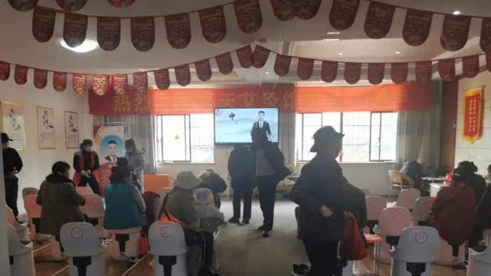 坐在台下听讲的阿姨们,像小学生一样用崇拜的眼神看着 “老师”。“老师” 讲完一段话,她们就猛点头,嘴里应和着。课讲完,台下一阵热烈的掌声。“小刘老师要给阿姨们布置一道作业,回去后把身边的亲人、朋友带来一起做理疗好吗?” 男子拖长音调,等着台下的回应,阿姨们高声答道:“大家好才是真的好。”