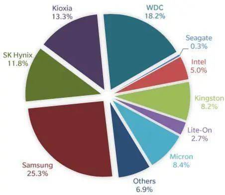 这个香饽饽,主营内容就是现在改名叫铠侠.(.Kioxia.)的闪存芯片,它在全世界的市场占有率一直都位列前三,紧随三星之后,与西部数据并驾齐驱,妥妥一只下金蛋的母鸡。