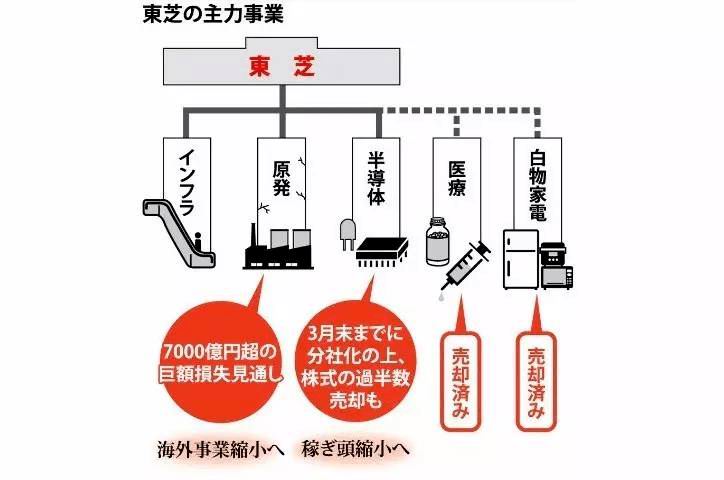 不只是变卖分支业务,东芝还把辉煌了半个世纪的电子设备业务分家分了出去,计划让设备部门独立上市,试图通过另立门户的方式完成自救。