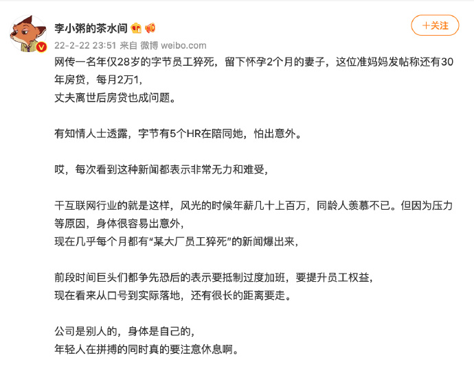 @梅花冷人:前面那个字节猝死的案例,有人说她家 21000 的房贷杠杆非常高。