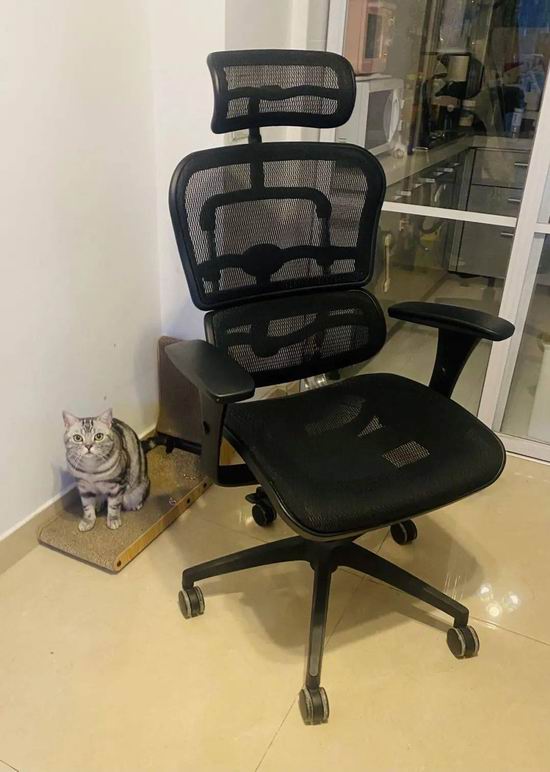 她的上一把椅子是淘宝买的,200 块钱,坐久了屁股疼。这把 “保友金豪 b” 的椅子明显刚采购回来没多久,几乎全新。她迫不及待坐了上去,立刻感受到了一种不一样的包裹和支撑感,“原来这就是传说中的头等舱待遇”。