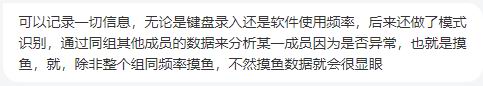 因为他们还整出了一套算法,会抓取你上了什么网,上了多久,键盘上按了啥这些数据,并且拿来和同事们作比较。