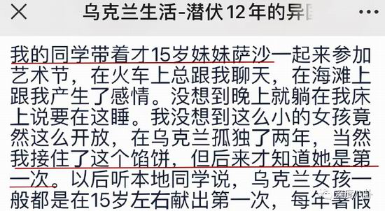 他也晒了不少乌克兰女生的照片,说是他的前女友们。自言谈过十几任乌克兰女友。还详细地讲了他读大学时,如何拿走了.15.岁初恋女友的第一次,称之为."馅饼";