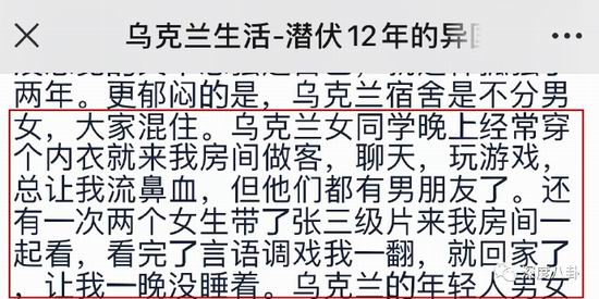 他描述的乌克兰,就像是.8090.年代的中国,人民善良单纯,物价低廉、生活节奏慢,女性的性观念不同。他也晒过自己在乌克兰的房子,几十万人民币就可以买.3000.平米的土地,永久产权,再花上几十万就可以盖上一栋别墅。