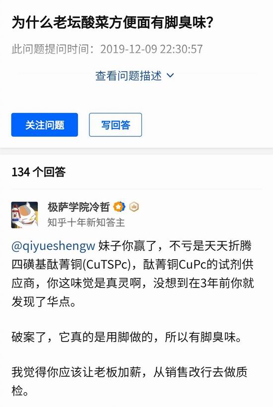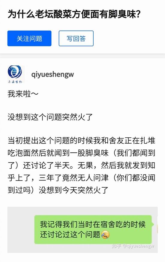 2019 年的提问:为什么老坛酸菜方便面有脚臭味?