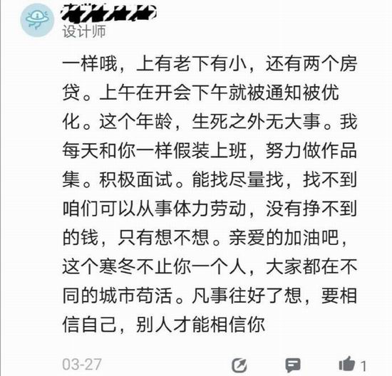 感觉有太多太多的人需要倾诉,哎,在这种大环境下,大家真的有工作的要尽力保住工作,没工作的也别气馁,降低预期,简历多投投,副业多搞搞,一起熬过这段时间吧,共勉。