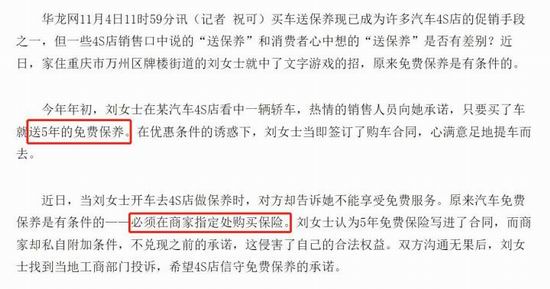 新闻曝光的「免费保养」相关纠纷,绝大多数都是 4S 店送出的。