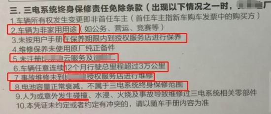 经过众多限制条件后,能真正享受「三电终身质保」的人实属凤毛麟角。