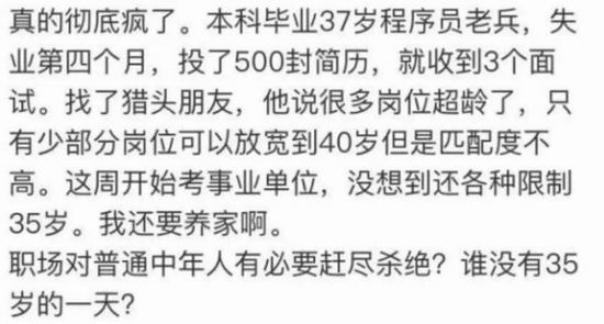 ▲ 一位 37 岁的程序员在网上发帖诉苦,称因年龄被优化后只能选择考公。图 / 网络