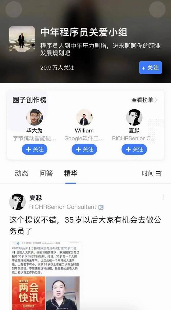 ▲ 脉脉上的 “中年程序员关爱小组” 有着 20.9 万的关注,其中最经常讨论的问题有脱发、缺觉、颈椎受损等身体问题。图 / 脉脉截图