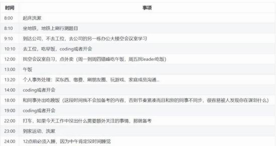 ▲ 《程序员考公指南》创始人之一在网站上分享自己的考公作息时间表。图 / 网络