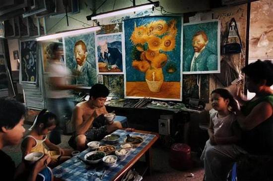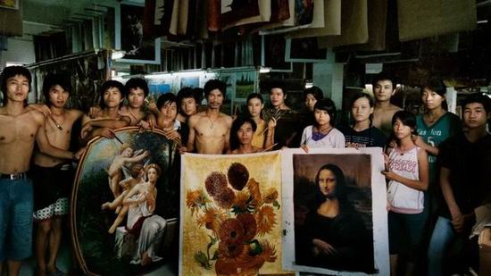 鼎盛时期,在大芬这个没有工业企业的小村里,仅油画交易额都超过 2 亿元。无数张「星空」,「睡莲」,「蒙娜丽莎」从这里发往世界各地。