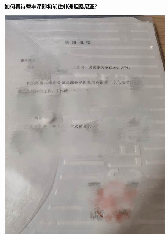 就在昨天,曹大佐在知乎晒出了一张 “录用证明”,他已经即将去非洲坦桑尼亚,做一个支援坦桑尼亚建设的工程师了。