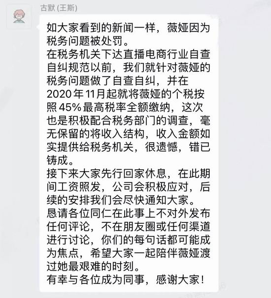 但如今偷逃税款的罚单已出,董海锋 “管钱” 的失职也已经暴露。这位毕业于中国农业大学法律系的谦寻控股董事长兼总经理在致歉信里表示,薇娅被罚,他 “难辞其咎”。因为深知自己在税务上不专业,便聘用 “所谓的专业机构” 进行税务统筹合规,但后来才发现 “税务统筹有极大风险”。