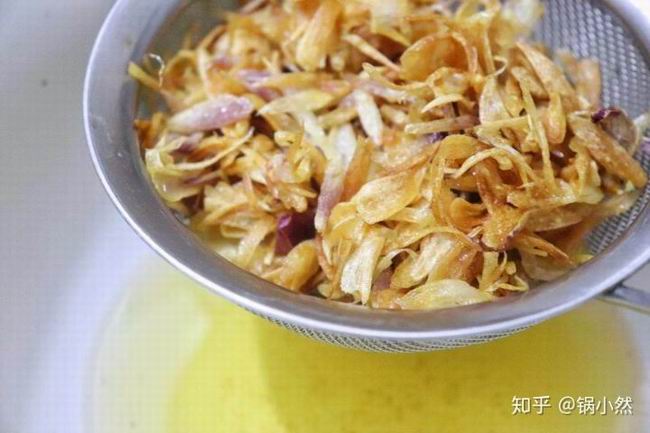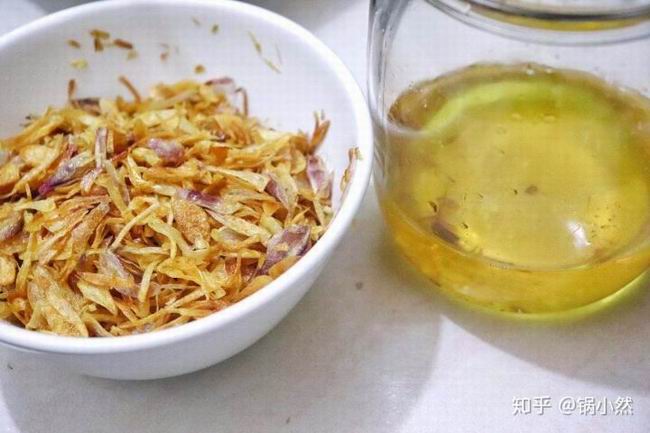 调小火(保持最内圈火是最大),此时葱头接近干酥,要快速翻动,继续炸两分钟左右,关火,迅速离灶,防止继续升温,尽快沥油。