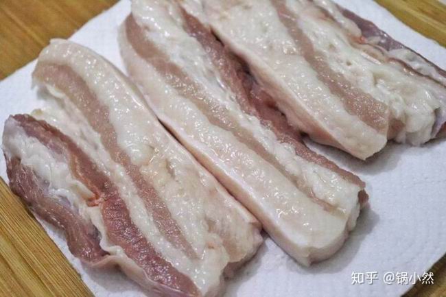 ⑦.顺势来处理猪肉,洗净后用厨房纸吸干水分。