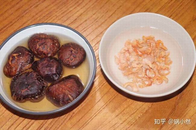 ①.温水浸泡干香菇和虾米.20.分钟以上,不管它。