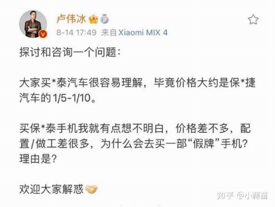这条微博的另一层含义,即便是小米中国区总裁的卢伟冰先生,那也是对华为的高端是认可了的。