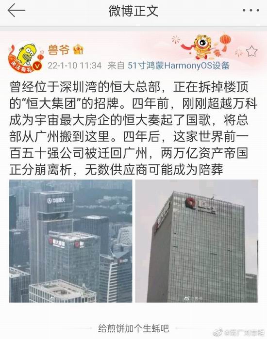 @菊厂刘掌柜: 恒大目前的深圳总部大楼,记得是租的卓越的写字楼,并不是自己盖的,楼顶的公司名称应该只是 “冠名权”,深圳有很多写字楼会把整栋冠名权打包或者买断年限给大客户。