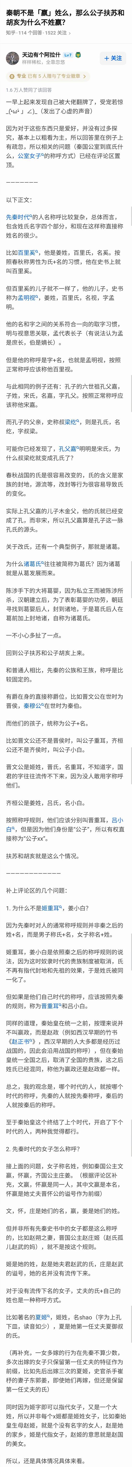 » 秦朝不是「嬴」姓么,那么公子扶苏和胡亥为什么不姓嬴?