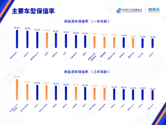 汽车流动协会公布的,2021 年 12 月份,电动车保值排行。