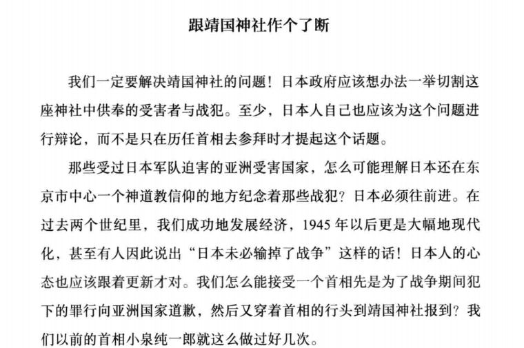 "我的国家几乎是一块美国殖民地…….日本成了美国的奴隶。"