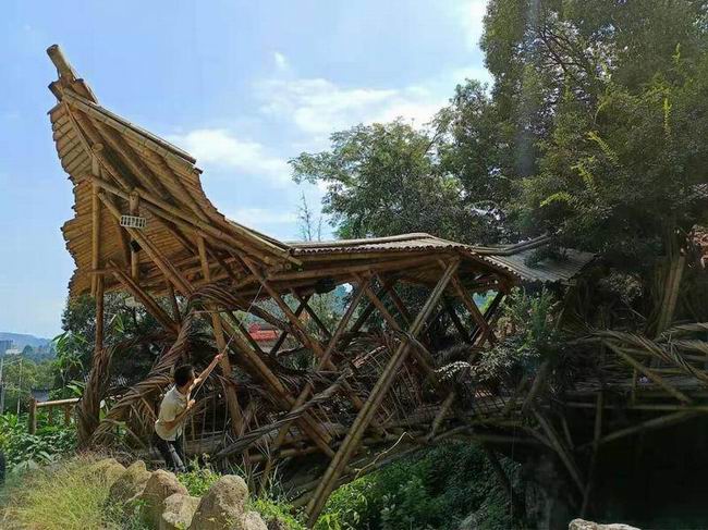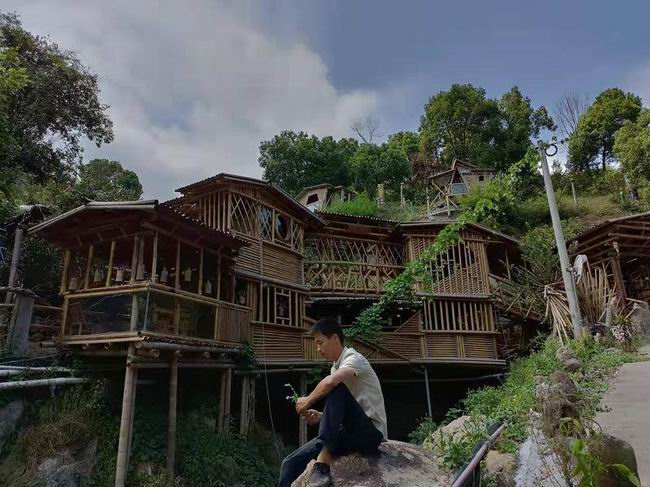 捣腾哥和他用竹子建起的 “城”。