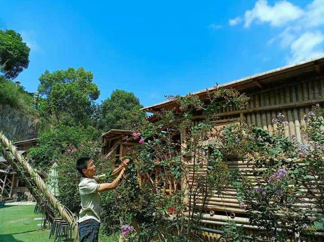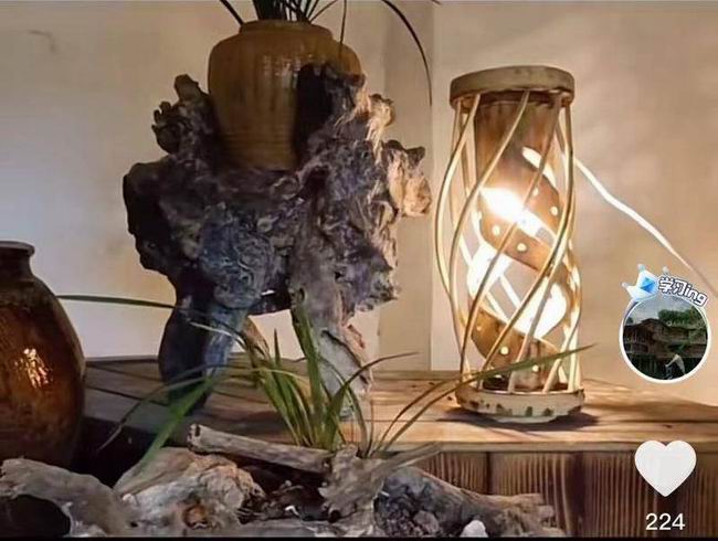 几年下来,生意愈发红火,王家乐在多个城市开了直营店、产品展示中心和产品加盟店。他还加大投入,搭了不少竹楼作为接待、参观和学习场所,工作之余的时间,都用来美化园区。他从河里捡来石头堆成假山,装上喷泉,又在园区中间挖了一方池塘,铺了鹅卵石,由一座石桥连接到石子路。他甚至还去学习了雕刻,将人形或动物形状的石雕或木雕坐落在园区门口。这些都成了日后他在短视频中展示的作品。