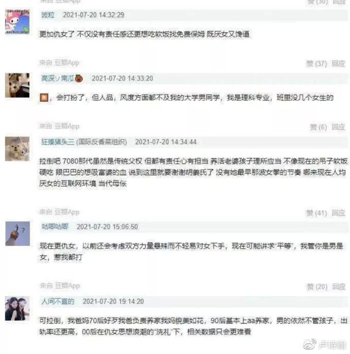 我还挺希望有个群体能真正地为那些弱势的女性发声,那些出生在重男轻女家庭里被虐待的女孩子,那些农村里被迫拿自己彩礼扶弟的姐姐们,那些被丈夫家庭暴力的妇女们。显然女拳师并不能做到,她们只是在挑动男女对立好 ...