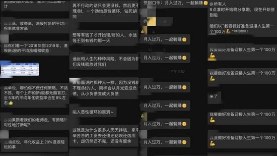 “何以打败通货膨胀,唯有理财”。一段段深入浅出的故事,一碗碗精心炮制的鸡汤,群友们群情激奋,齐刷刷打出:“我要做好准备迎接人生第一个 100 万”、“月入过万,一起躺赚”。