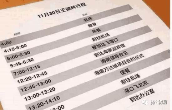 2016 年 12 月,万达集团公众号发了王健林一天的行程:4 点起床,一天之内飞了两个国家、三座城市。