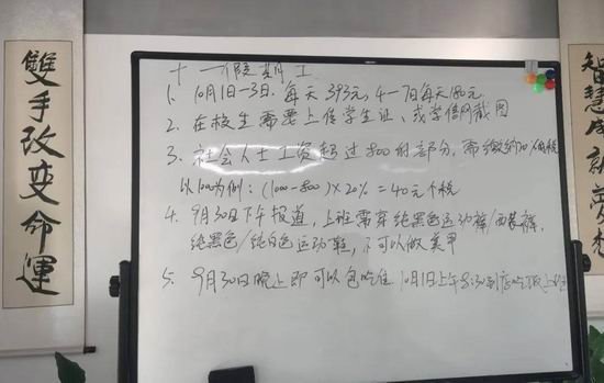 ▲.入职信息旁贴着."双手改变命运"。图./.受访者提供