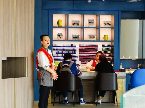 ▲.海底捞等位区,提供免费美甲、手部护理等服务。图./.视觉中国